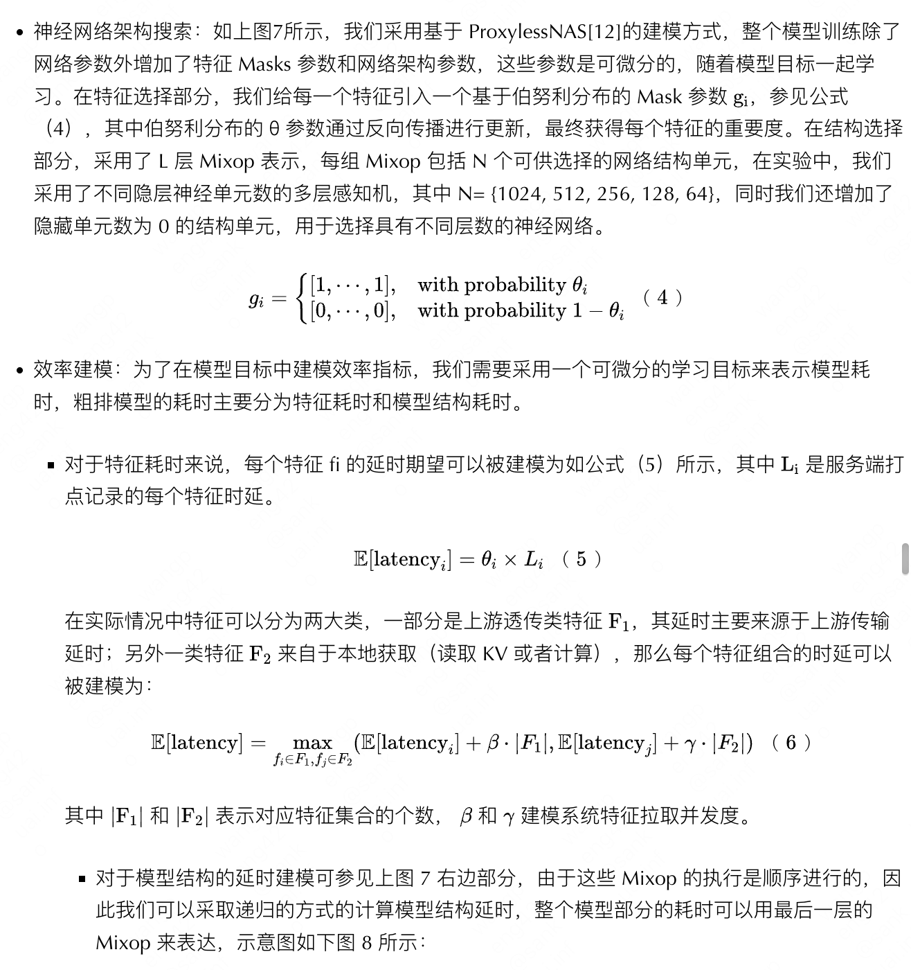 通过神经网络架构搜索的建模来联合优化粗排模型的效果和预测性能,离线 Recall@150 +11PP, 最终在线上延时不增加的情况下,线上指标 CTR +0.12%;详细工作可参考[13],已被 KDD 2022 接收。