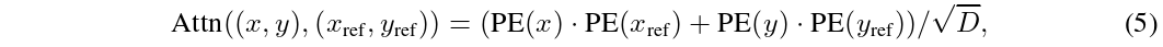 为位置(x , y)处的图像特征,· 为逐元素乘法。查询和键中的位置嵌入都是基于2D坐标生成的,这使得比较位置相似性更加一致,就像前面的作品( Meng et al , 2021 ; Wang等人, 2021年)一样。