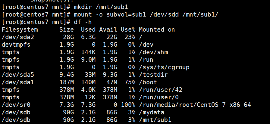 - mount -o subvol=subv1 /dev/sdd /mnt/subv1