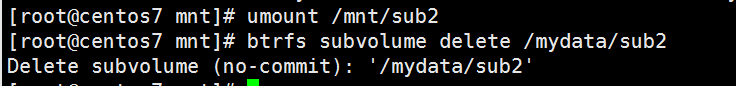 - btrfs subvolume delete /mnt/suv1