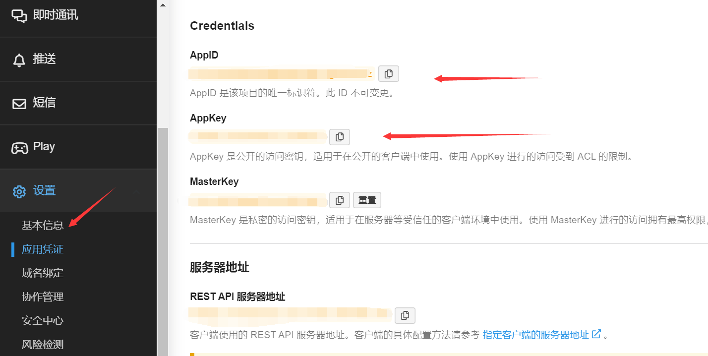 appid和appkey,便于后续使用: