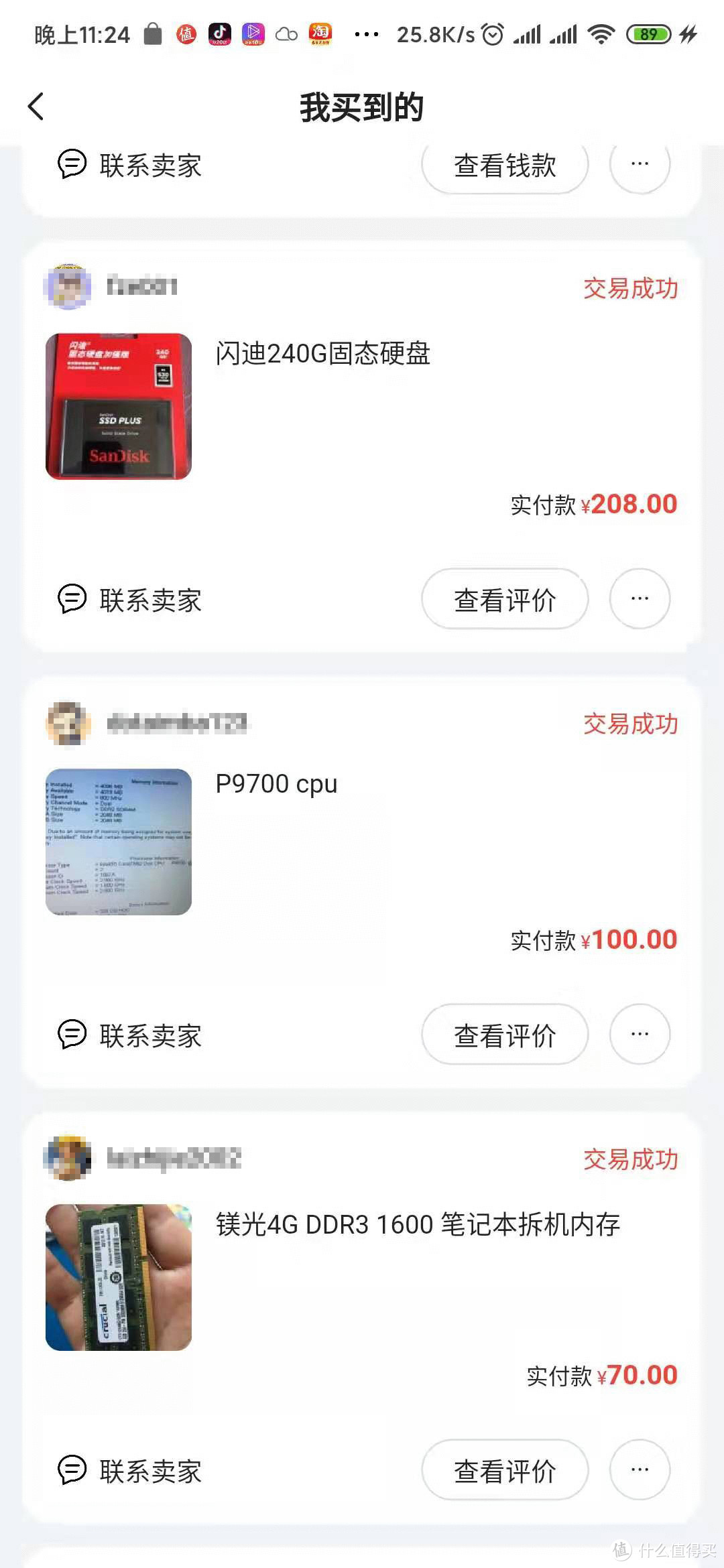 先把处理器给换了,CPU不可能买新的,闲鱼便是我的首选,考虑P9600还是P9900,蹲了几天,最终100元包邮P9700和70元一条4G内存,208元闪迪240GB固态硬盘,连着顺便买下来。之前赶着回家,现在想想有些小贵,或许再等等会有更低价格。SSD也是个人库存,还得自己再买个转接固定架放置在CD位置。不到四百块的硬件升级,算是最后的升级。