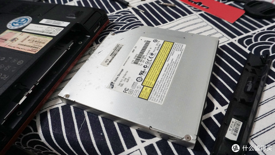 拆卸过程也很简单,松开后盖的螺钉,向外推就取出光驱,这个光驱也是很厉害的,还带有RW刻录功能,写过几次光盘,现在基本是废了,不会去用它了,重装系统什么的用U盘反复读写更方便。
