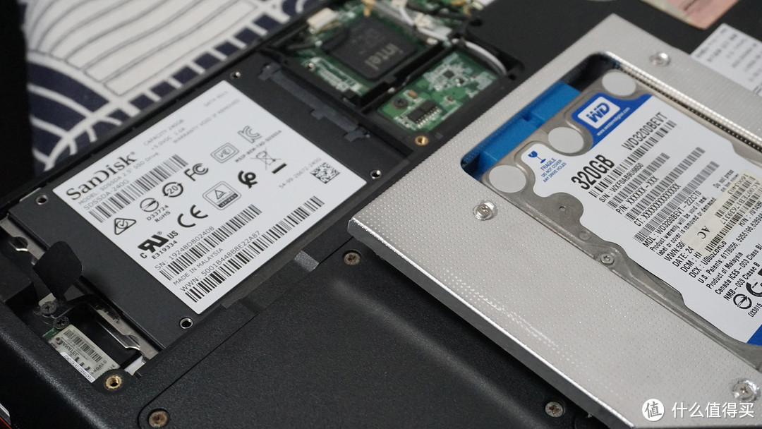 笔记本硬盘托架购买的时候要看清楚是厚度是多少的,贴吧也有前辈带路,很多信息还是可以搜索到。SSD固定好之后推入即可,再开机使用分区助手,直接将系统盘复制到SSD上。转完之后能够感觉明显快了很多,SATA2读写也是低于300MB/s,想着之后机器真的挂了,SSD还能拆出来再利用下。