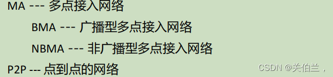 | BMA(以太网) | Broadcast | 可以建立多个邻居关系 需进行DR、BDR选举 hello 10s dead time 40s |