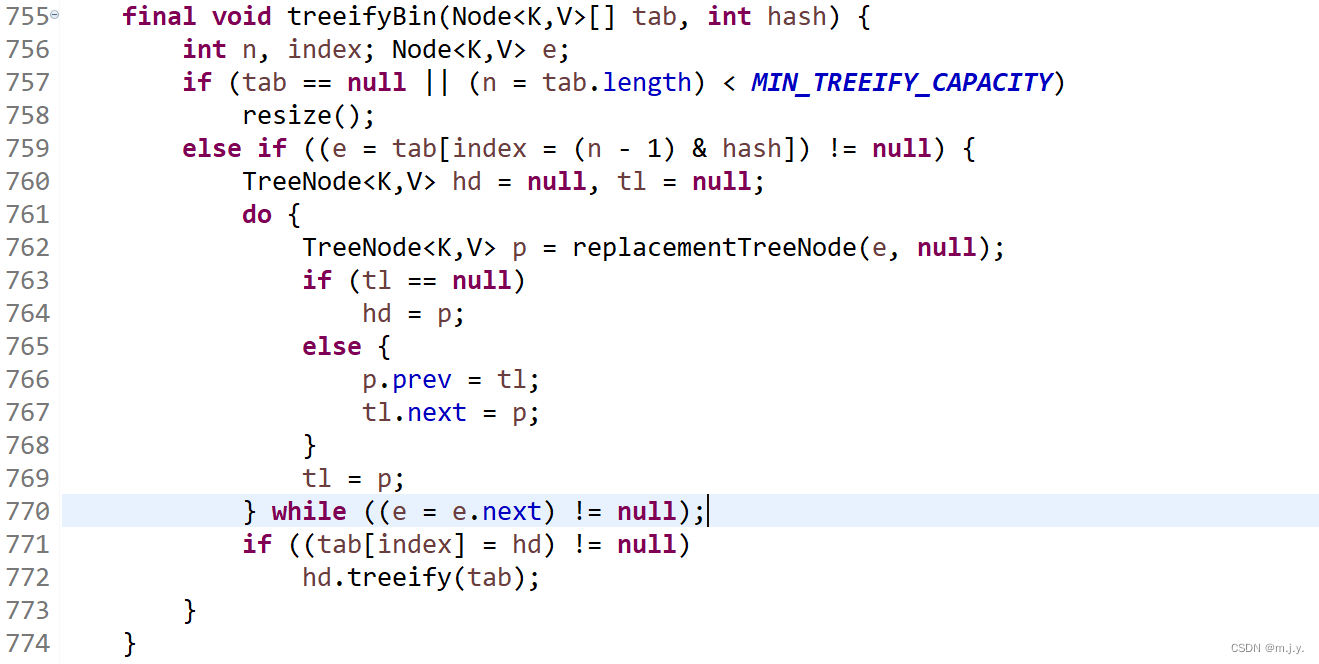 并且与索引计算公式为i = (n-1)& hash配合使用,如果n为2的幂次方,那么n-1的低位就全是1,哈希值进行与操作时可以保证低位的值不变,从而保证分布均匀,效果等同于hash%n,但是位运算比“%”模运算要高效的多;