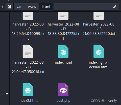 紧接着开启apache2服务,在此打开setoolkit基本上可以用了,这种方式克隆网页放在“/var/www”下,克隆的网页就是www目录下的index.html;txt文件中存放的是kali截获的数据。