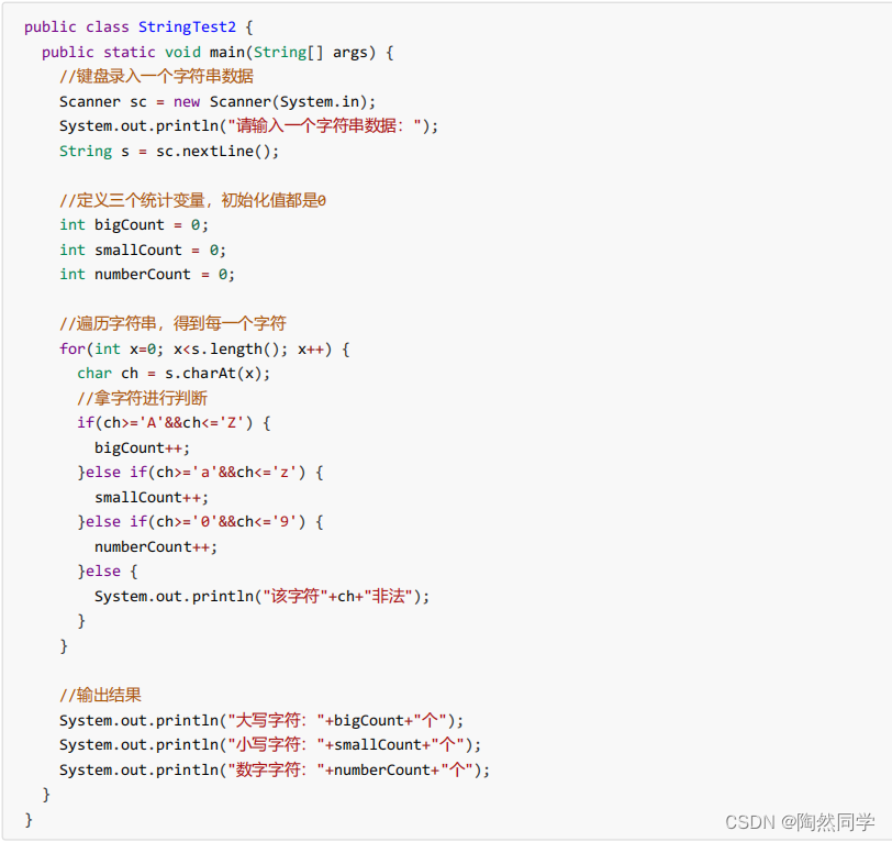 键盘录入一个字符,统计字符串中大小写字母及数字字符个数