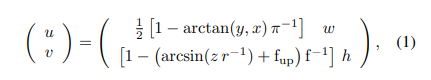 该方法的关键思想是使用激光雷达扫描数据生成的深度图像进行杆状物提取,我们利用球面投影生成距离图像。每个激光雷达点p=(x,y,z)通过映射到球坐标生成图像坐标,定义如下