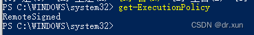 3. 运行 `get-ExecutionPolicy` 命令,可看到脚本的执行策略已被更改为 RemoteSigned
