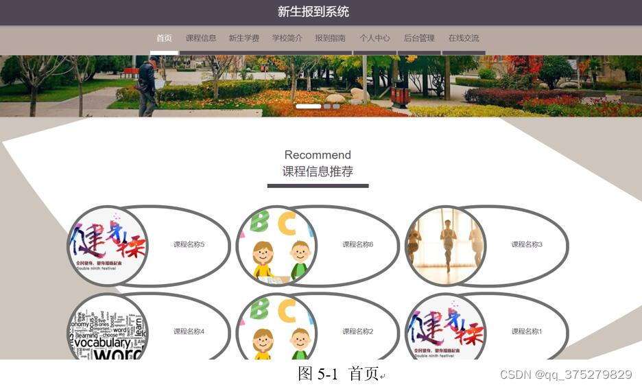 学生用户只要实现了前台信息的查看,打开首页,查看网站介绍、信息公告、课程信息等,学生用户通过账户账号登录,登录后查看报名状态、预约报道、查看宿舍和班级。