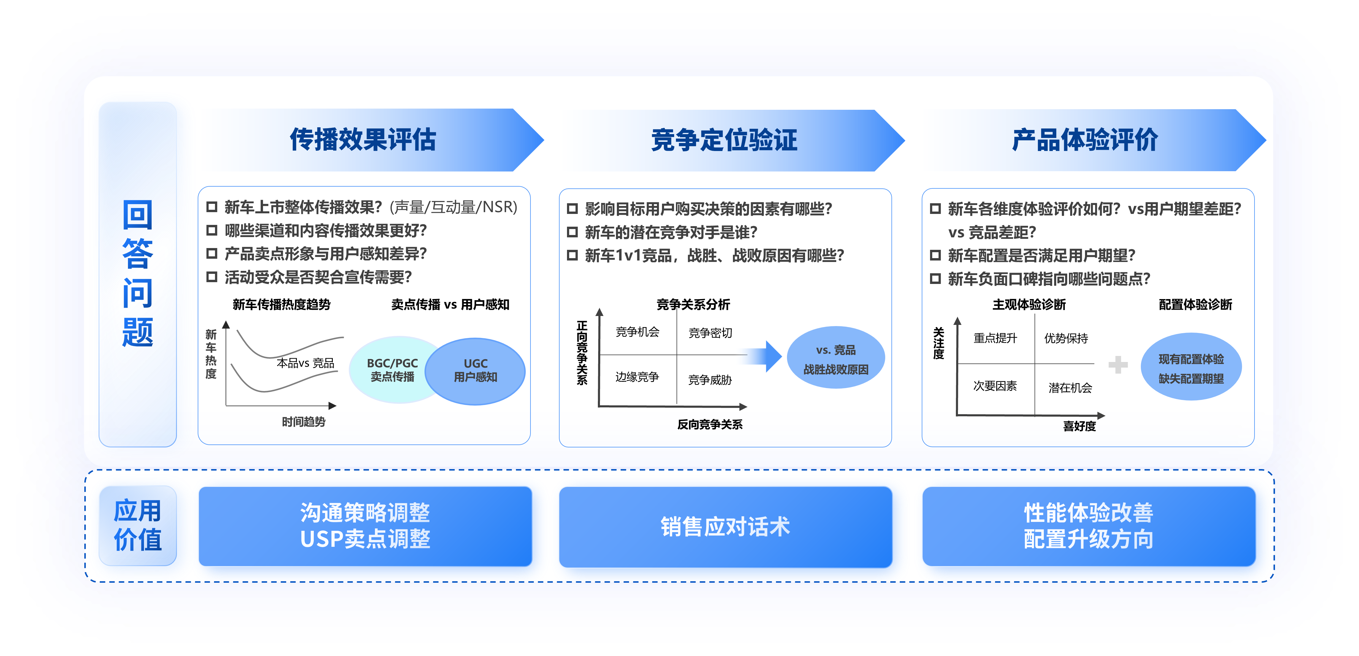 数说故事汽车行业《产品管理场景解决方案》,目标是构建以用户体验为中心的产品生命周期管理体系,通过全量汇聚社媒垂媒声音,精准挖掘用户需求与产品体验,为车企产品创新、产品定位、上市策略及产品优化等业务场景提供决策支撑。