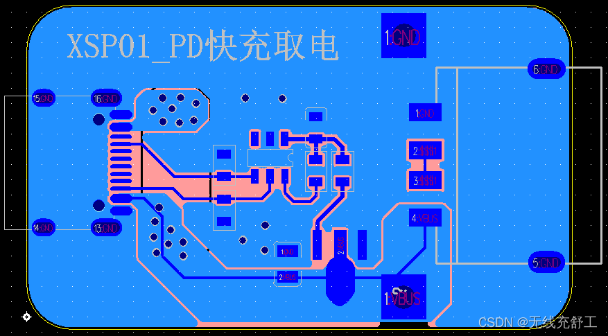 PD协议不用于QC协议,它需要有协议通讯才能输出对应的快充电压,如9V、12V、15V、20V。如下图,使用取电芯片XSP01与充电器连接通讯。