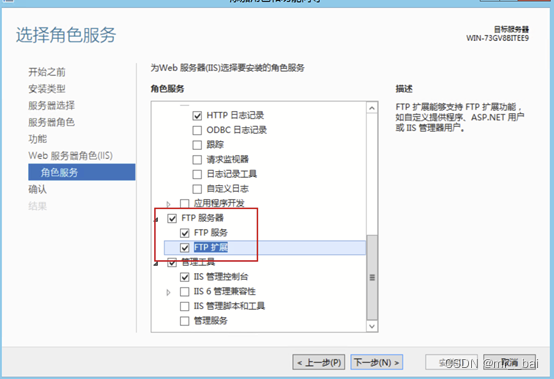 6、角色服务,勾选FTP服务