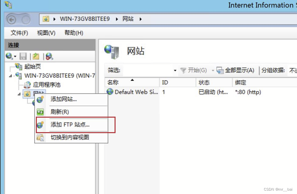 9、右击网站,点击添加FTP站点