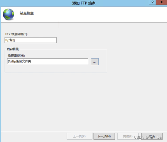 10、 打开后填写ftp站点名称和备份文件夹路径