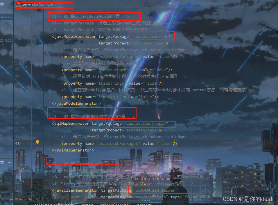 - <sqlMapGenerator targetPackage="com.ps.ssm.mapper"