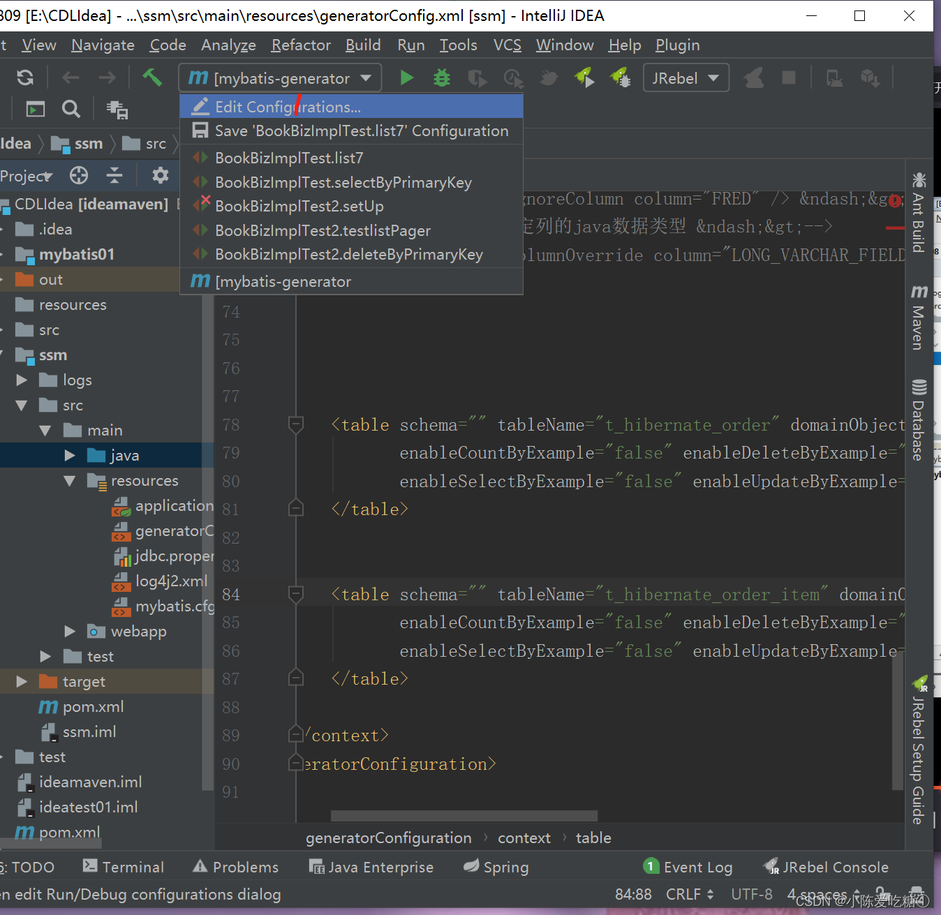 2.1 修改配置文件generatorConfig.xml 逆向生成