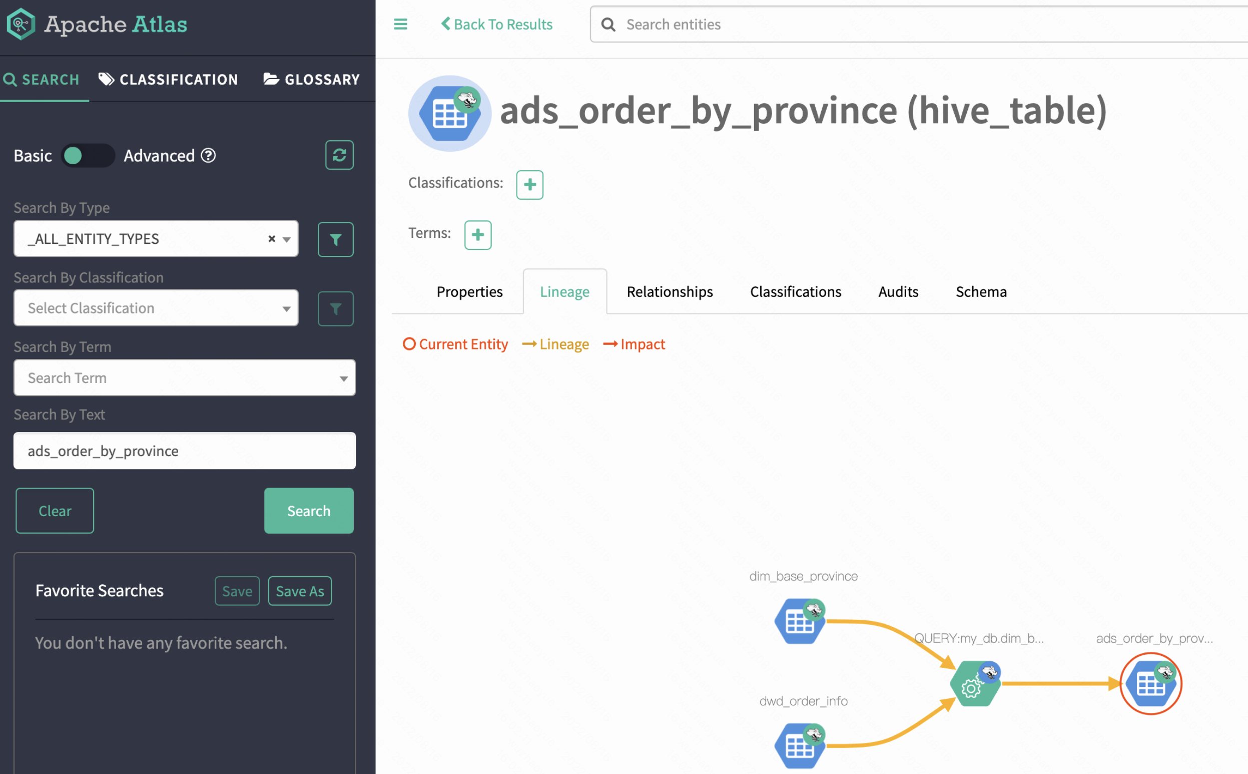 Atlas读取到消息后会生成数据模型,存储到 Hbase 中,生成表与表,列与列的血缘关系依赖,在前台展示给用户查看。