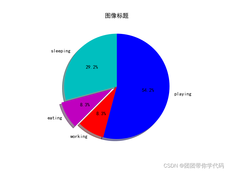 - activities = ['sleeping','eating','working','playing'] #各个扇形标签