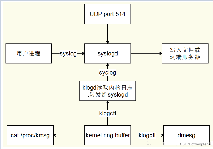 在用户空间有专门用于记录系统日志的程序,统称为“日志守护进程syslog”。位于 /etc/syslog 或 /etc/syslogd,默认配置文件为 /etc/syslog.conf。