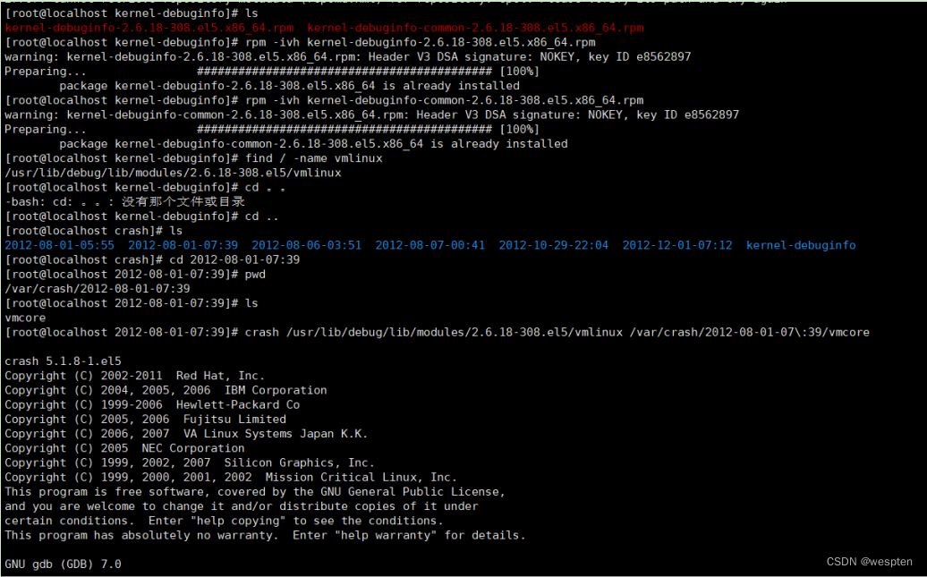 - crash: vmlinuz-2.6.18-307.el5.debug: debuginfo file not found