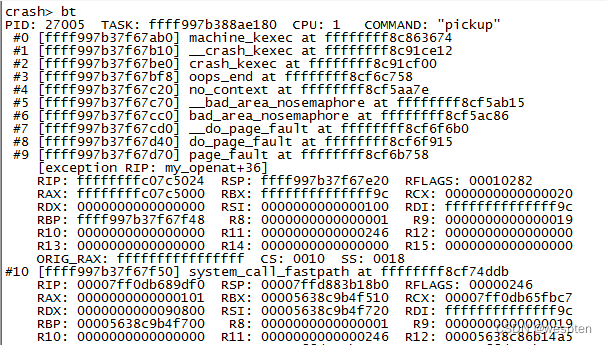 - #9 [ffff8800591ebb10] page_fault at ffffffff8168df88