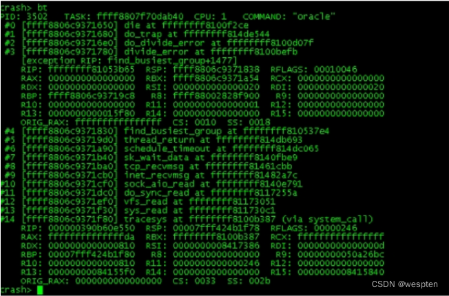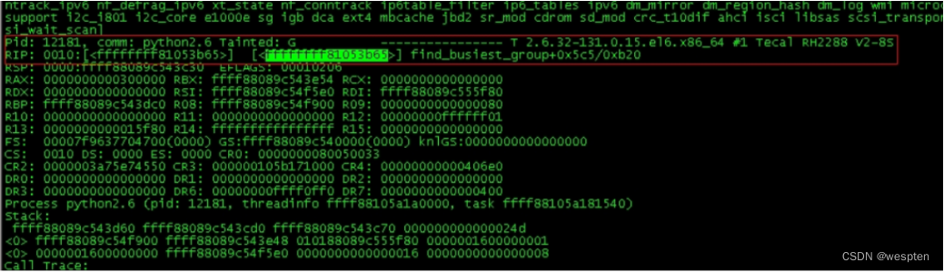 - RIP: ffffffffa09b09e9 RSP: ffff8800591ebbc8 RFLAGS: 00010202 #RIP 是函数中panic时的地址