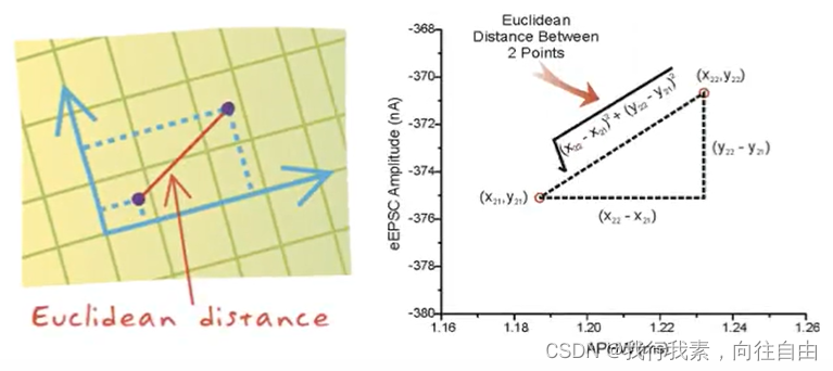 欧氏距离是最容易直观理解的距离度量方法我们小学、初中和高中接触到的两个点在空间中的距离一般都是指欧氏距离。