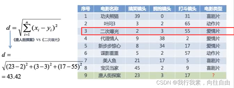分别计算每个电影和被预测电影的距离,然后求解: