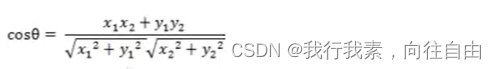 - 二维空间中向量A(x1,y1)与向量B(x2,y2)的夹角余弦公式: