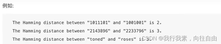 两个等长字符串s1与s2的汉明距离为:将其中一个变为另外一个所需要作的最小字符替换次数。