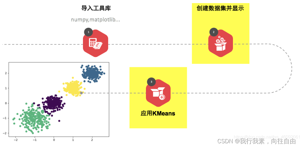 (1)从数据集中随机抽取一些数据形成小批量,把他们分配给最近的质心