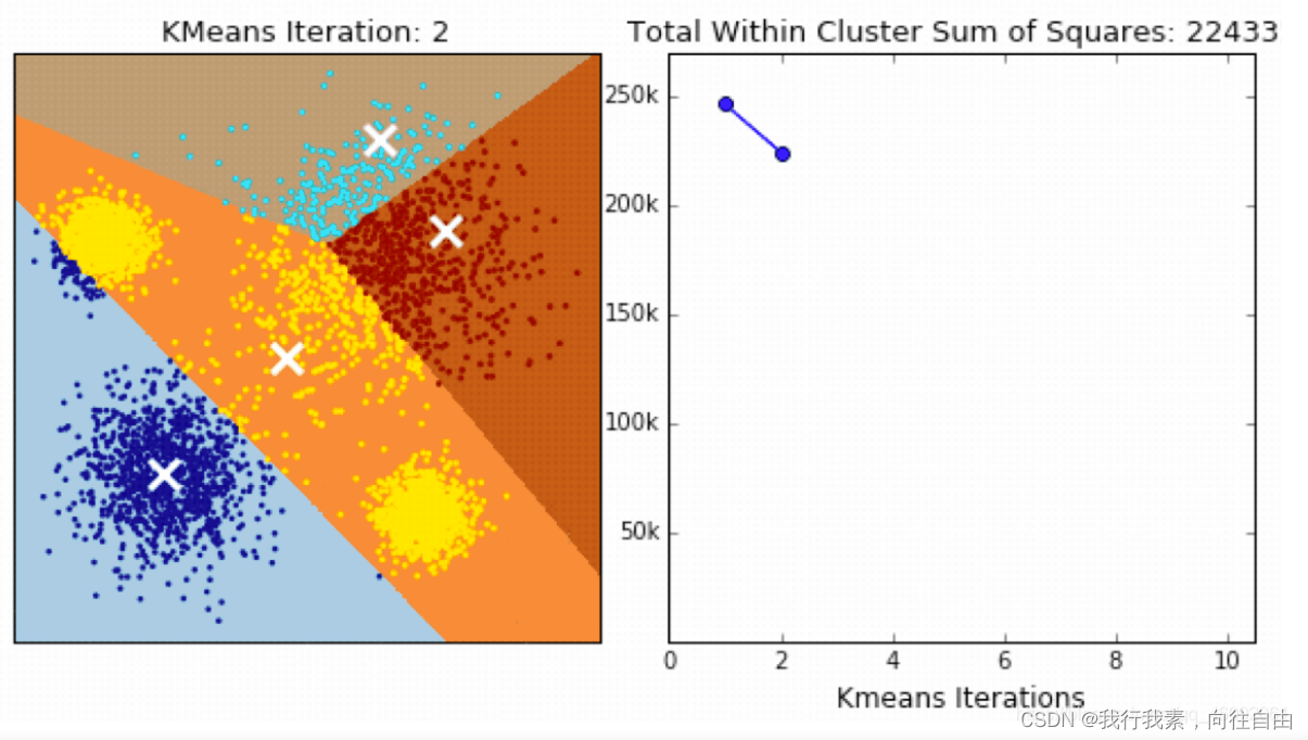 与Kmeans相比,数据的更新在每一个小的样本集上。对于每一个小批量,通过计算平均值得到更新质心,并把小批量里的数据分配给该质心,随着迭代次数的增加,这些质心的变化是逐渐减小的,直到质心稳定或者达到指定的迭代次数,停止计算。