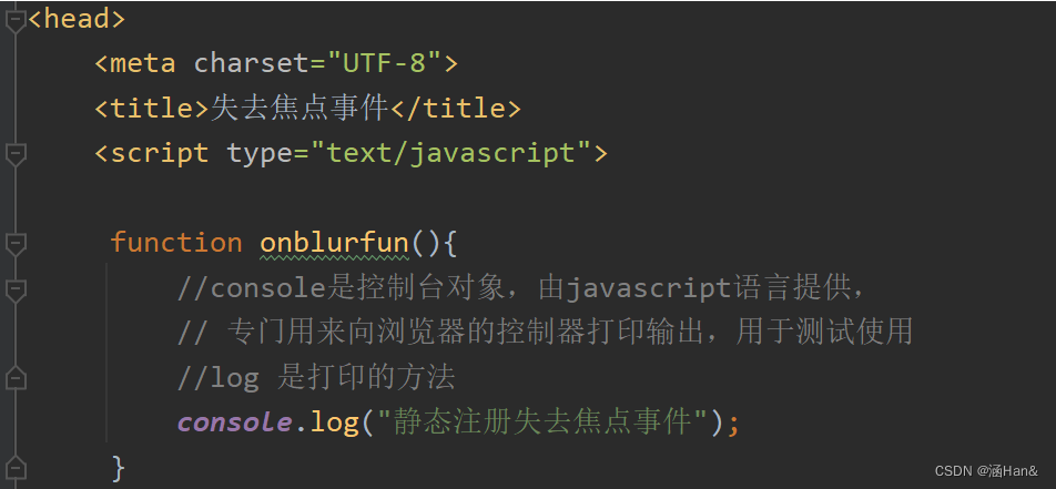 onblur 失去焦点事件:常用于输入框失去焦点后验证其输入内容是否合法