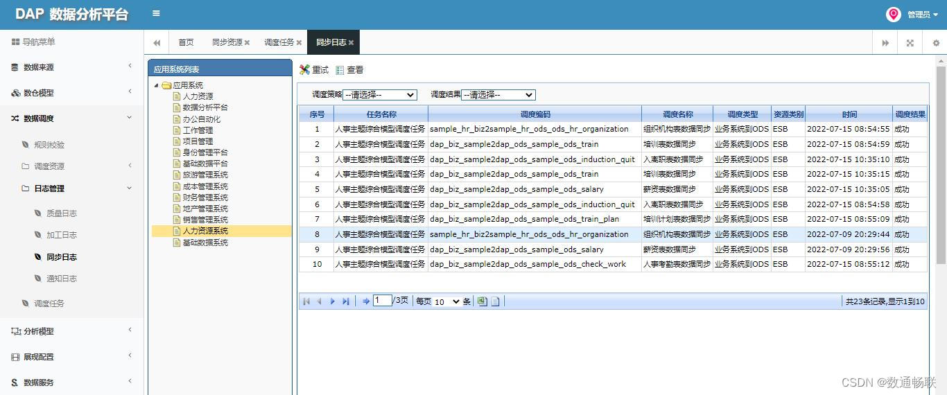 调度日志可以显示调度任务的执行情况,显示成功失败、调度任务的执行时间、策略等详细信息。