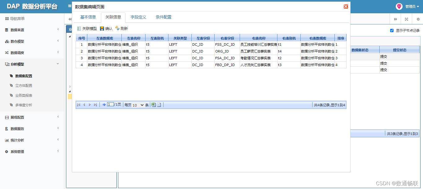 重点内容:模型配置主要为配置各汇总事实表关联关系,并基于元数据生成对应调度任务。