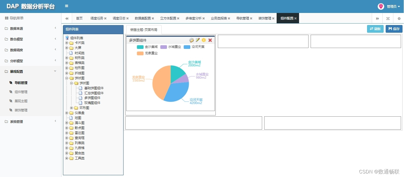 1.DAP数据分析平台:结合ESB从各系统进行数据抽取、加工、转换,并汇聚存储到数仓中,基于数仓通过图形化、拖拽式配置构建分析主题,实现快速、精准分析,支持领导层的决策。