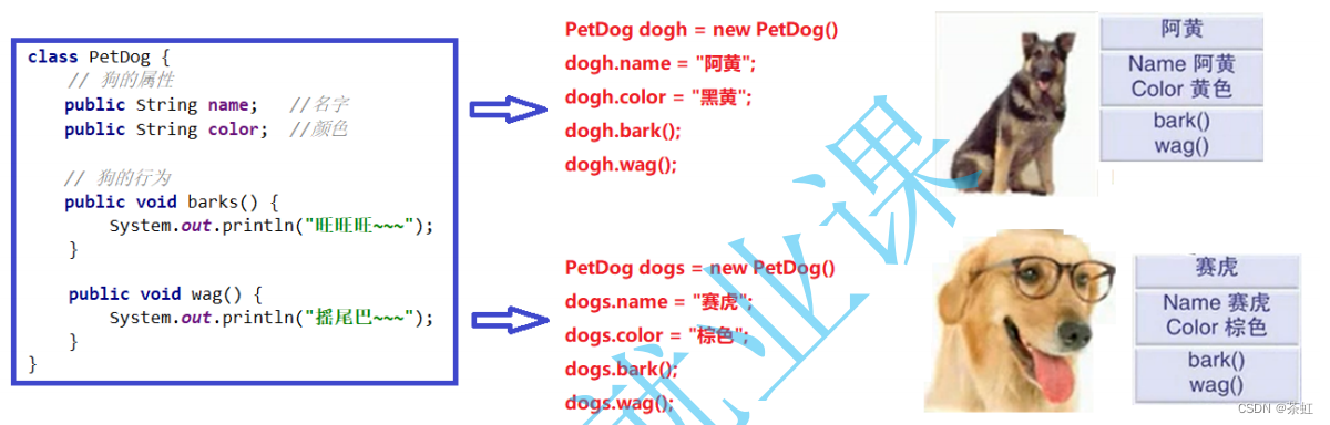 - PetDog dogh = new PetDog(); //通过new实例化对象