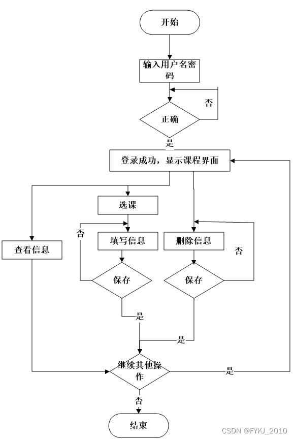 经过对系统功能的分析,调查,研究,总结出学生选课系统主要实现的是对选课管理、成绩管理、用户信息等管理功能。这样,可以对该系统绘制业务流程图。