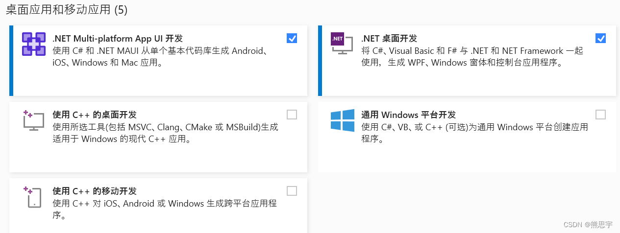 Visual Studio Installer,选择 vs2022,添加 .NET Multi-platform App UI 模块,如下图
