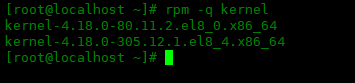 [root@localhost ~]# rpm -q kernel kernel-4.18.0-80.11.2.el8_0.x86_64 kernel-4.18.0-305.12.1.el8_4.x86_64