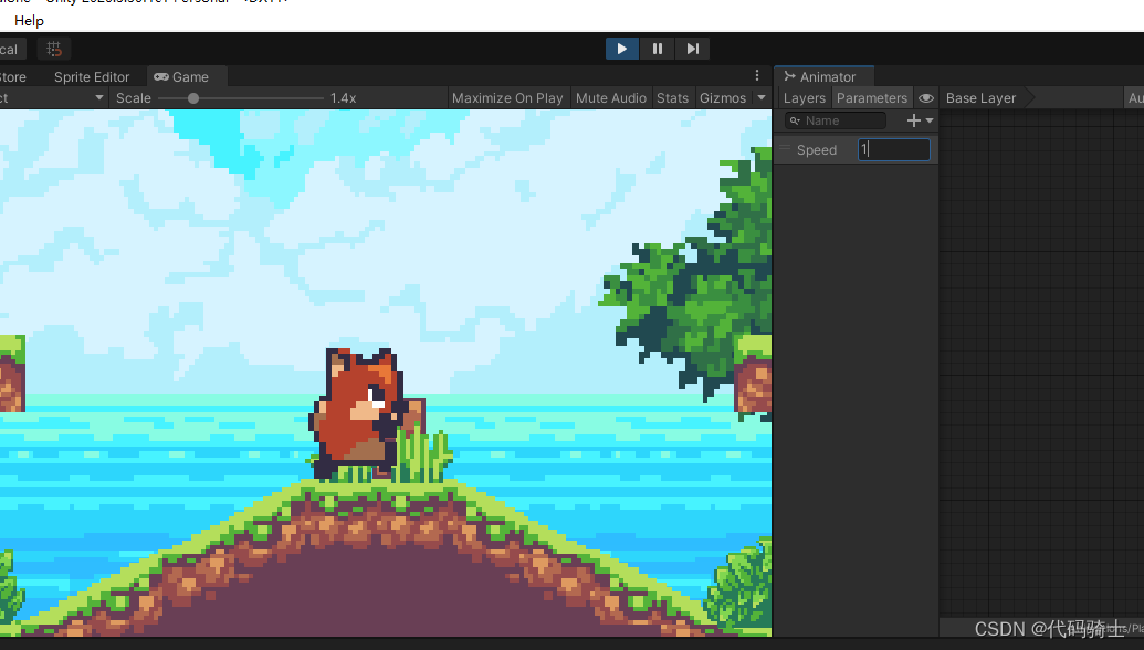 - animator.SetFloat("Speed", Mathf.Abs(move));//将玩家当前速度传给动画器的speed参数