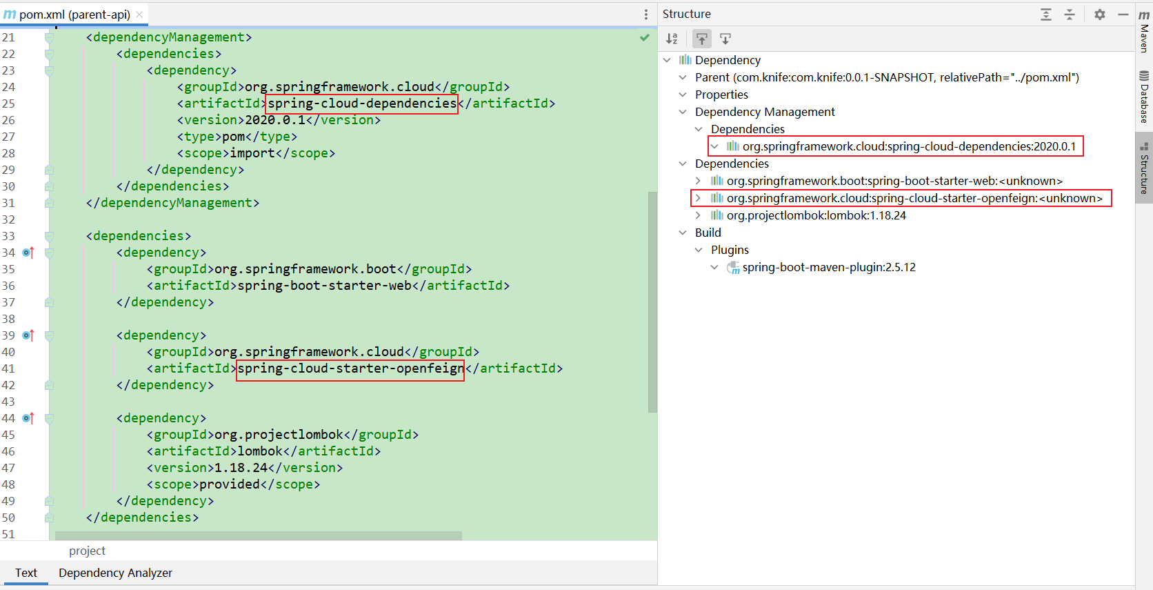 可以看到,本层没有引入“spring-cloud-starter-openfeign”。