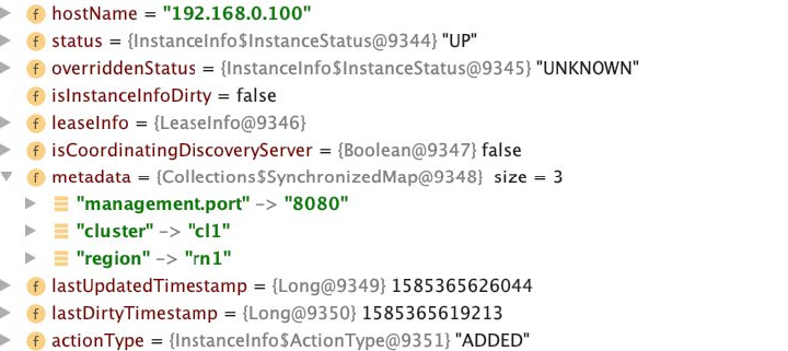 自定义元数据:可以使用eureka.instance.metadata-map配置,符合KEY/VALUE的存储格式。这 些元数据可以在远程客户端中访问。