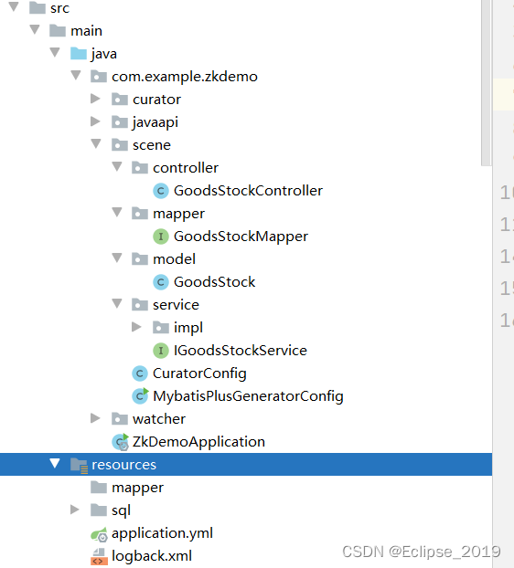 2、采用mybatis-plus搭建项目,项目结构如图所示