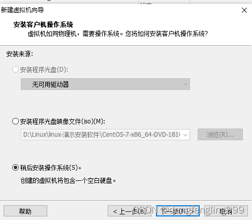 选择自定义硬件,主要设置CentOS的镜像 点击【自定义硬件】