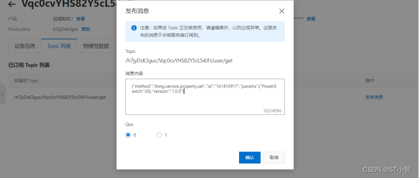 第一份指的是阿里云发送数据成功到我们的开发板上中,同时这一部分也是阿里云的物模型通信Topic列表的属性设置模型