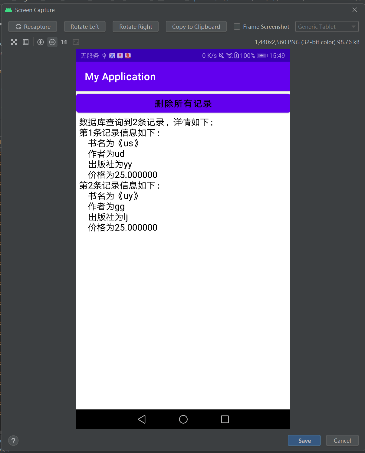 - String desc = String.format("数据库查询到%d条记录,详情如下:", bookList.size());