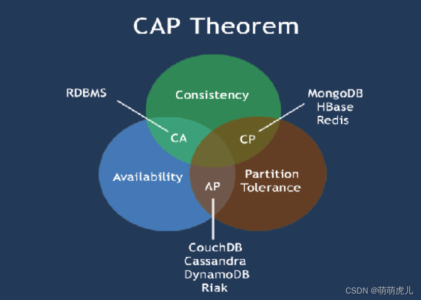 CAP理论的核心是:一个分布式系统不可能同时很好的满足一致性,可用性和分区容错性这三个需求,因此,根据 CAP 原理将 NoSQL 数据库分成了满足 CA 原则、满足 CP 原则和满足 AP 原则三大类: